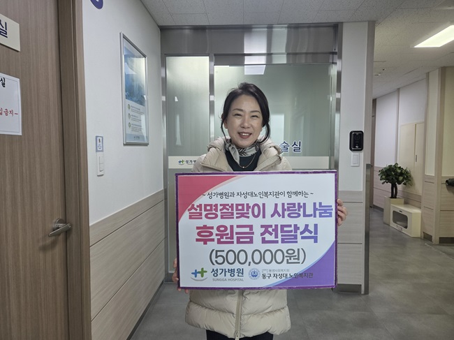 성가병원, 동구자성대노인복지관에 설명절 사랑나눔 후원금 전달